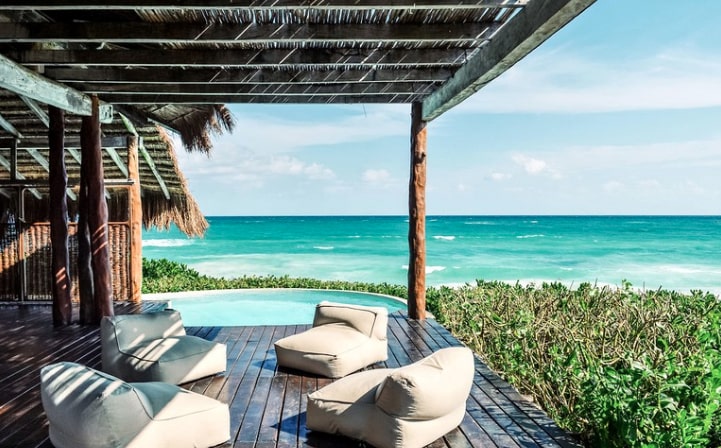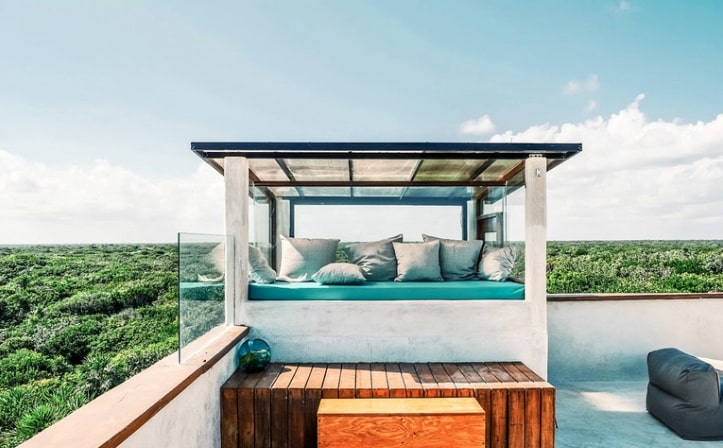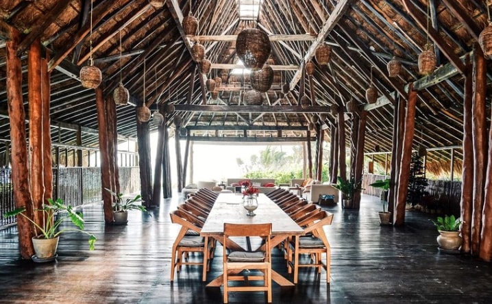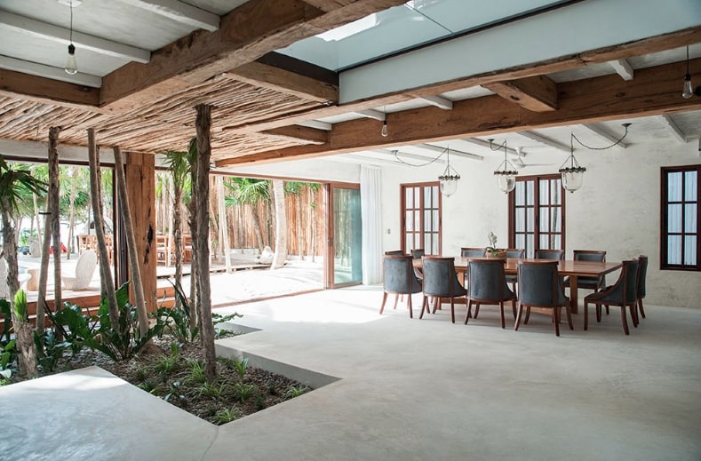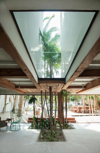 Une allée intérieure de végétation luxuriant à été conservée allant vers un grand espace ouvert, avec vue sur la plage, et qui compte une cuisine, une salle à manger et un salon. Les quatre chambres à coucher de cette maison moderne sont également ouvertes vers l’extérieur. La transparence de l’architecture de la maison permet aux vents de jouer le rôle de climatisation naturelle tout en optimisant la vue vers la nature.